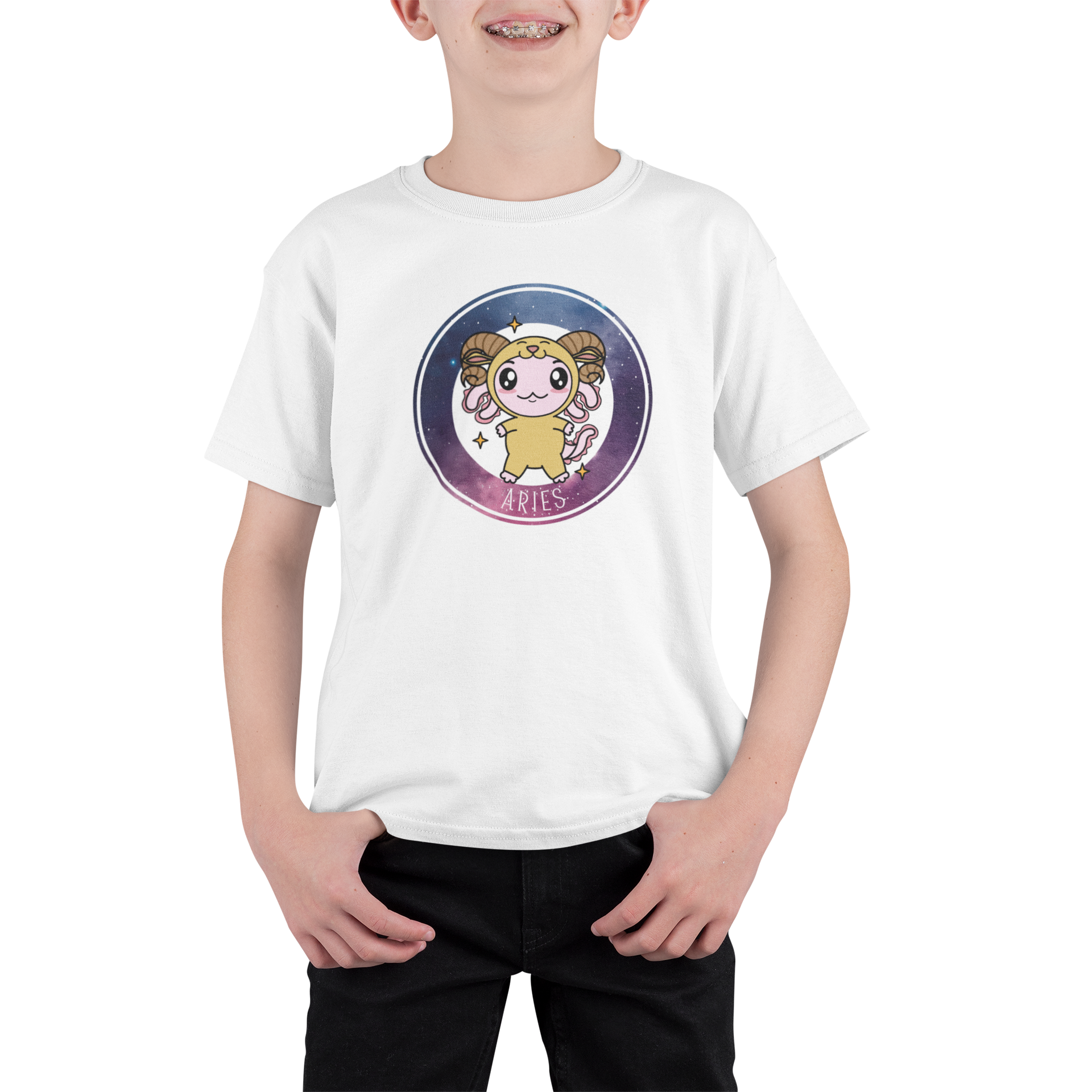 Playera Axolotzin Horoscopos Galaxy Aries Ajolote Adulto E Infantil